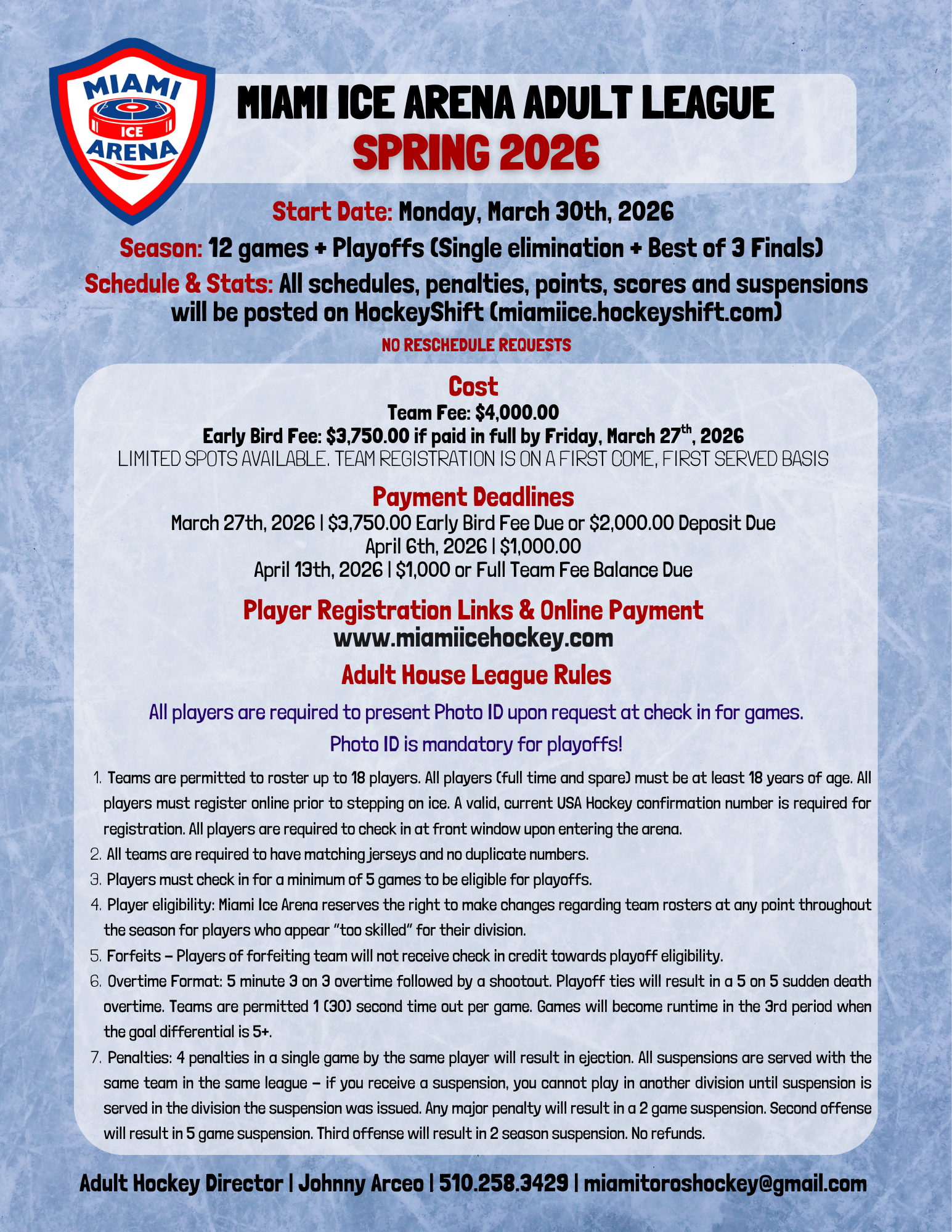 Please have your USAH Confirmation Number, Team Name & Jersey # ready to complete the registration. This registration is for assigned teams only. Free agents should reach out to the Adult Hockey Director regarding joining a team.
